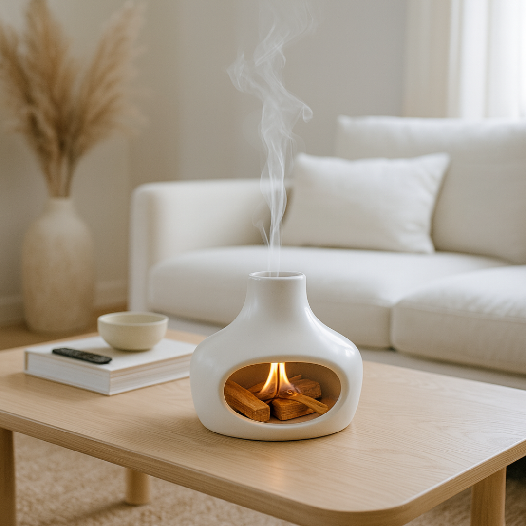 A: Light the tip of the palo santo stick, let it catch fire for a few seconds, then gently blow it out. Place the glowing stick inside the chiminea and allow the aromatic smoke to flow upward.